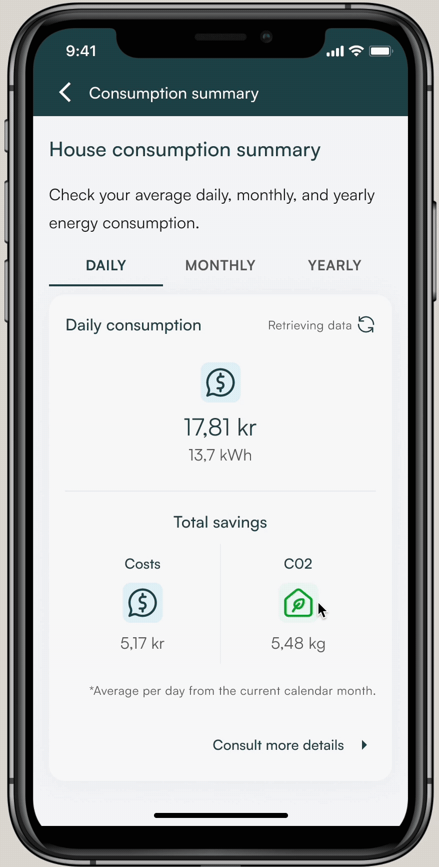 Real-time insights into solar energy consumption and savings
